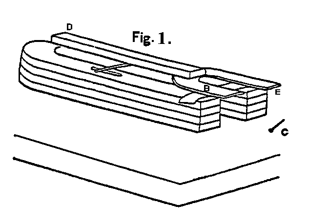 The soft iron now attracts the beam magnet C to the upper dotted line,whereupon it (the soft iron) is again drawn down over the neutral line,and its polarity again changing, the beam magnet C is again repelled tothe lower line, continuing so to move until it is stopped or worn out.
