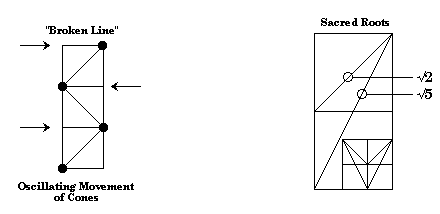Diagrams showing the tilting rotation of the three magnetic cores in relationship to one another.