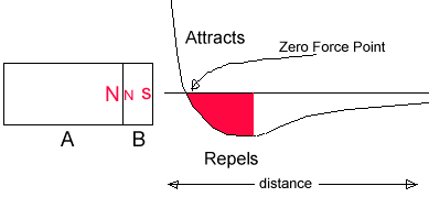 Now since it can be shown that there is a region of zero force near the poleof the magnet it should be possible to arrange a way for one magnet to beslid into place very close to the stack, staying always at the zero-forcedistance. Then, if the movable magnet were to be pushed slightly awayfrom the stack it would experience an area of increasing repulsion and thatforce might be used to supply energy to an over-unity motor.