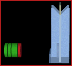 Moving the stack closer again the swinging magnet can be pushed closer tothe stack. Again at 10 to 12 mm away it will suddenly stop being repelledand will be attracted to the stack.
